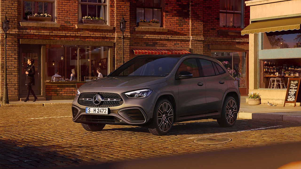 GLA (Foto: Mercedes-Benz AG)Mit seinem progressiven Design sticht der Mercedes-Benz GLA sofort ins Auge egal, wo er sich gerade bewegt. Seine adaptiven MULTIBEAM LED Scheinwerfer4 ermöglichen in jeder Fahrsituation eine hervorragende Sicht. Das Head-up-Display4 verwandelt dabei die Frontscheibe in ein digitales Cockpit und liefert wichtige Informationen virtuell und vollfarbig auf Augenhöhe. Für ein sicheres Fahrerlebnis, das uns seit 140 Jahren antreibt.