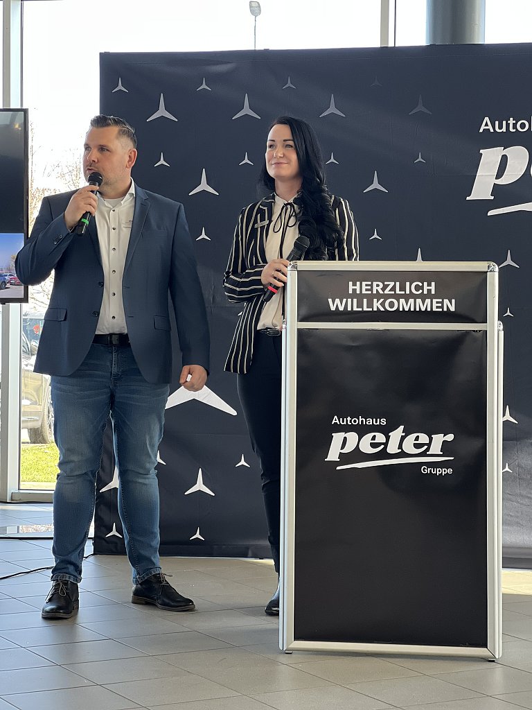 Passend dazu griffen Pkw-Verkaufsleiterin Esther Burg und Verkaufsberater Daniel Marré das Thema Mobilität auf und präsentierten den Gästen eine exklusive Sneak Preview neuester Fahrzeugmodelle von Mercedes-Benz. Vorgestellt wurden der GLB, der GLC sowie der CLA Shooting Brake. Während der GLB vor allem durch seine Vielseitigkeit und den großzügigen Innenraum überzeugt, steht der GLC für modernen SUV-Komfort und innovative Assistenzsysteme. Der CLA Shooting Brake verbindet sportliches Design mit hoher Alltagstauglichkeit und bietet viel Platz bei dynamischer Linienführung.