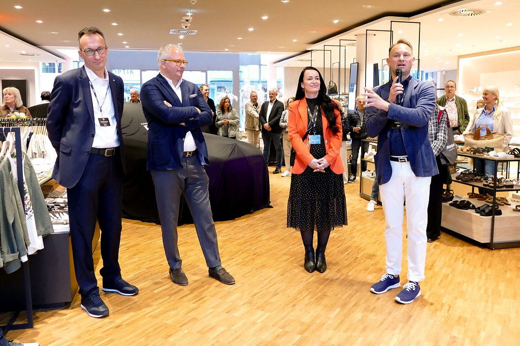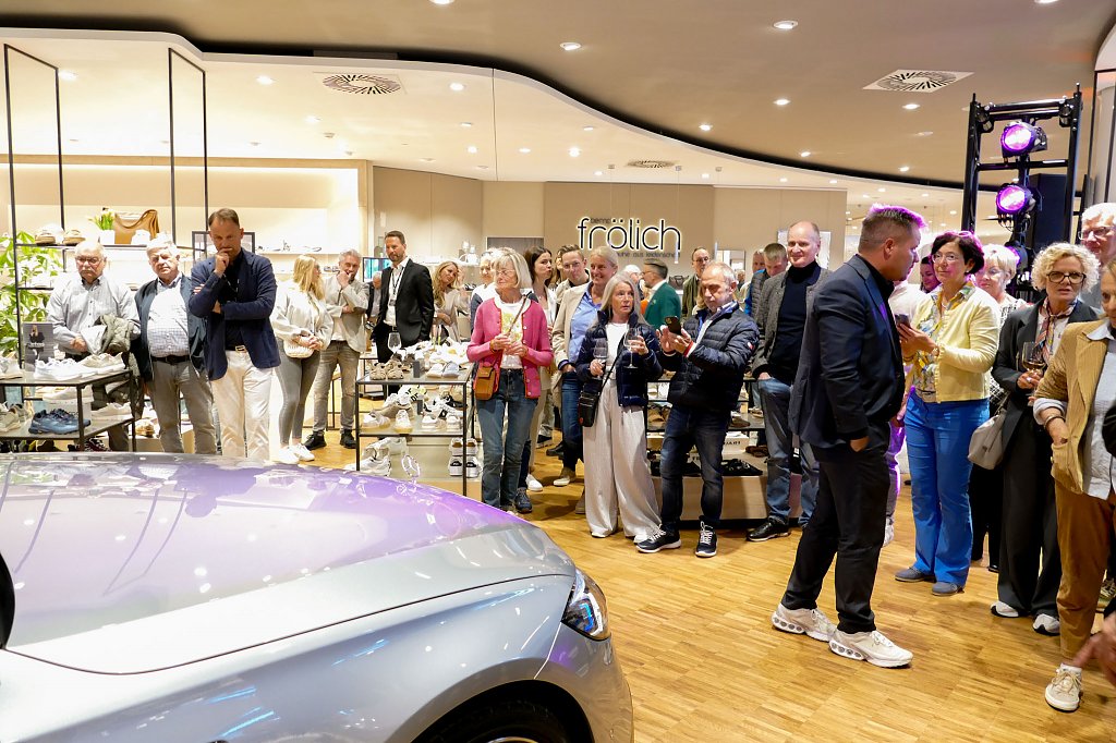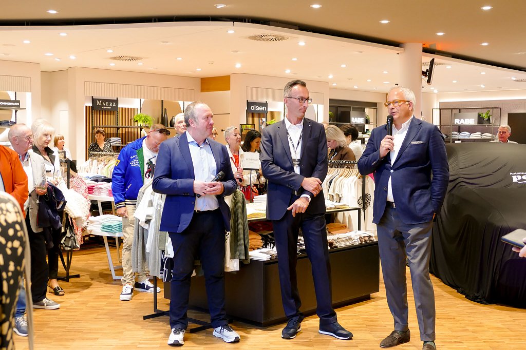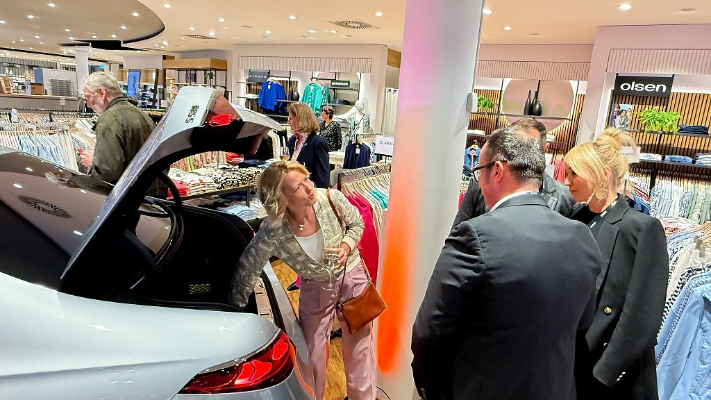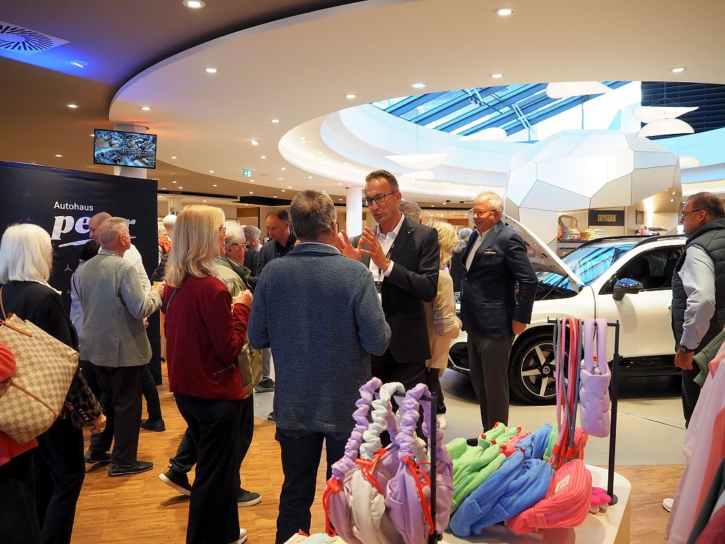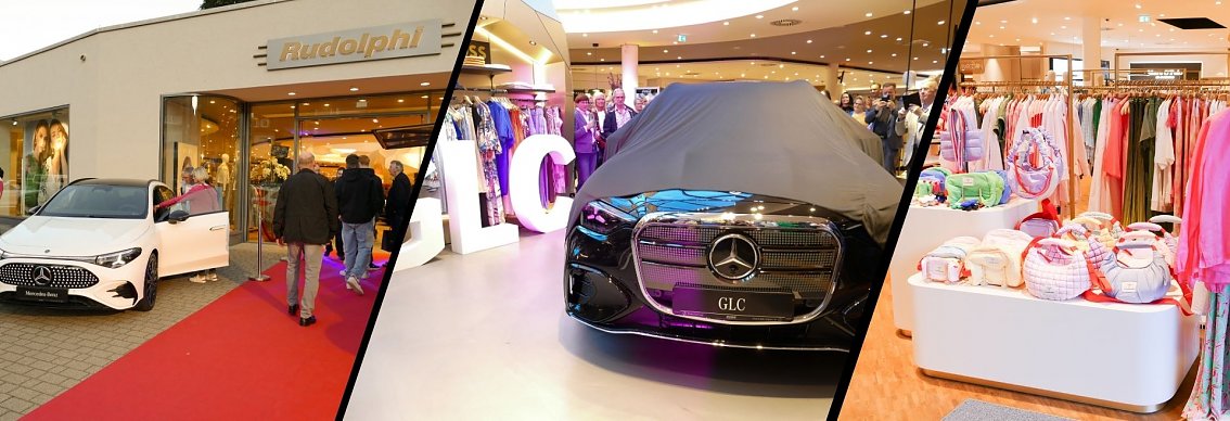Im stilvoll modernisierten Modehaus Rudolphi begrüßte zunächst Hausherr Carsten Kröger die Gäste herzlich, gefolgt von Geschäftsführer Andreas Peter und Verkaufsleiter Jörn Bierwisch vom Autohaus Peter. Auch der neue elektrische GLB präsentierte sich als echtes Highlight am Eingang: Mit einer Reichweite von bis zu 631 Kilometern, großzügigem Raumangebot und innovativer Ausstattung vereint er Alltagstauglichkeit mit moderner Elektromobilität.