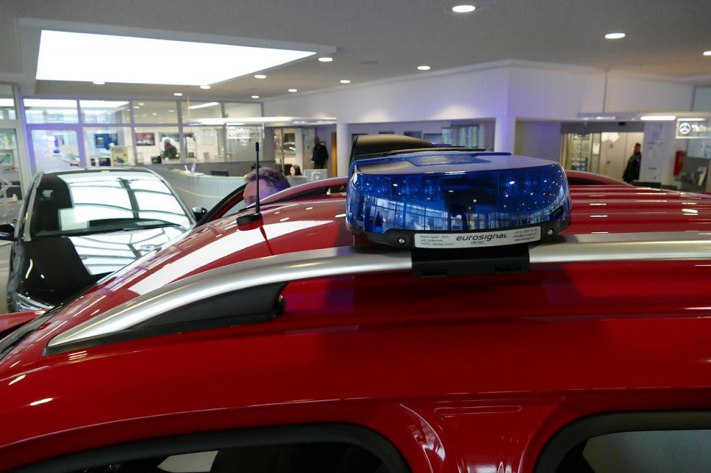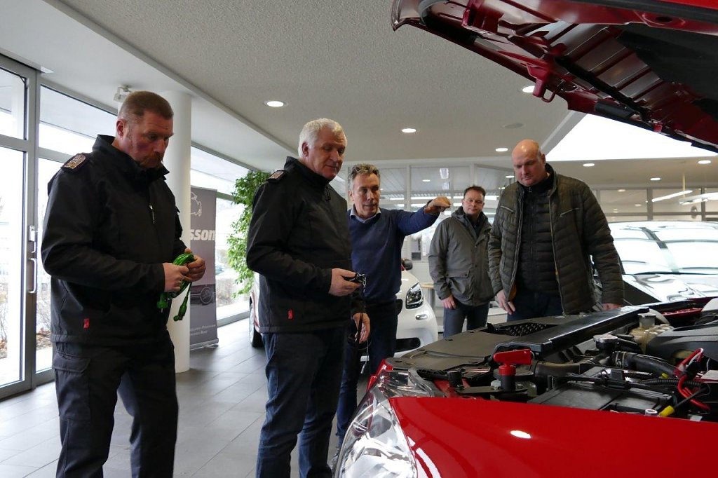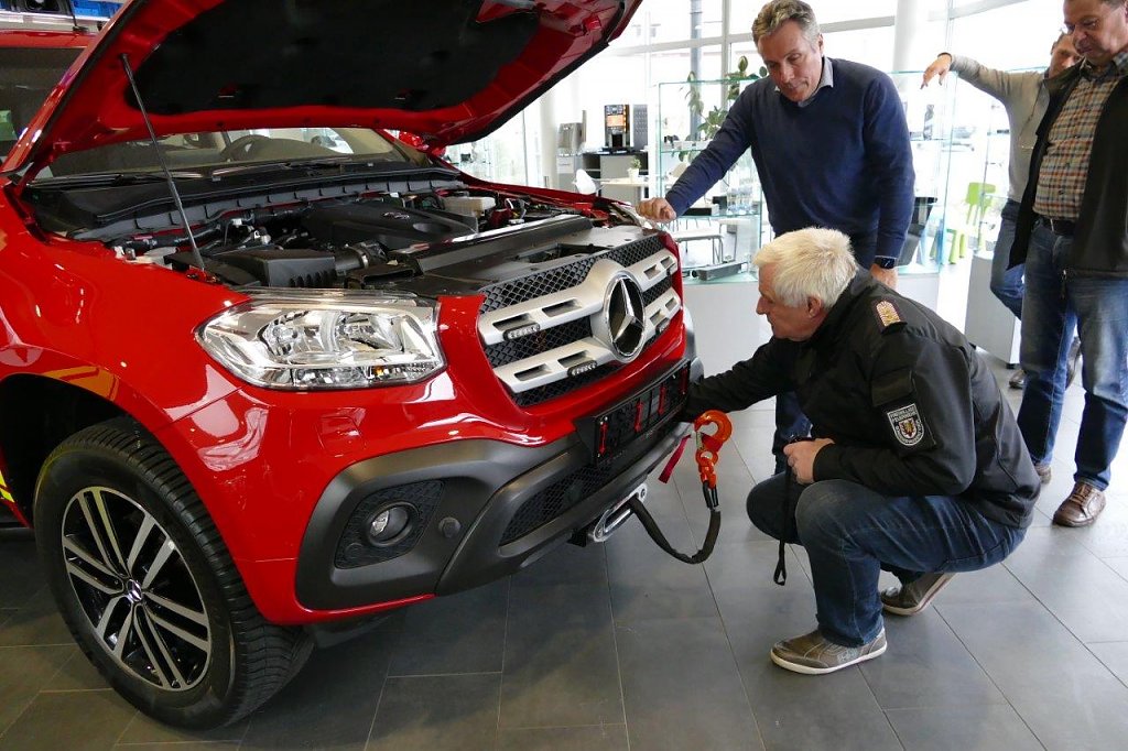 Nach der ausführlichen Erläuterung wichtiger Details und Bedienelemente übergab Centerleiter Marko Wuttke vom Autohaus Peter den Kommando-Einsatzwagen an Steffen Grimm und seine Begleiter.
