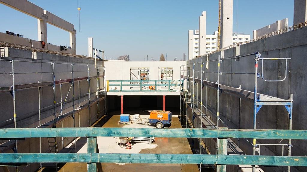 Noch befindet sich auf dem Gelände in Erfurt eine Großbaustelle. Seit kurzem läuft der Hochbau für das neue Automobile Dienstleistungszentrum und die Montage aller Betonfertigteile erfolgt. Somit nimmt das neue Autohaus weiter an Gestalt an.