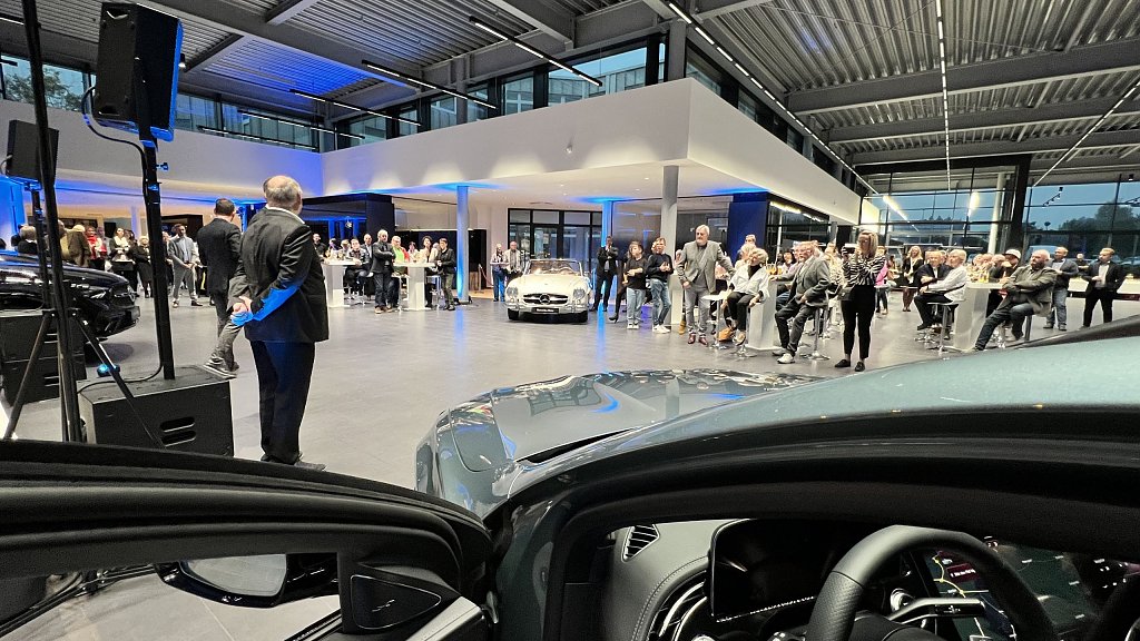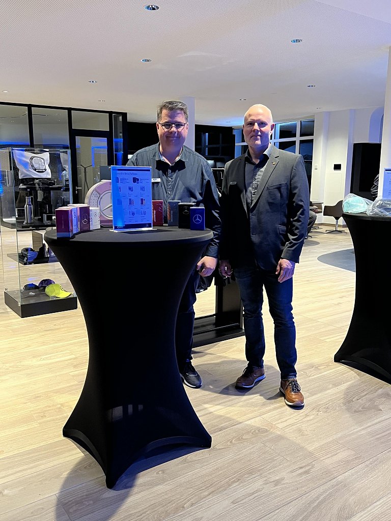 Die faszinierende Performance war jedoch nicht das einzige Highlight des Abends. Die Gäste konnten eine vielfältige Auswahl aus der aktuellen Mercedes-Benz Produktpalette bewundern, darunter das nagelneue E-Klasse T-Modell, der neue CLE und der neue EQT. Diese Fahrzeuge verkörpern die neuesten Innovationen und Technologien von Mercedes-Benz und beeindrucken mit ihrem eleganten Design und ihrer Leistungsfähigkeit.