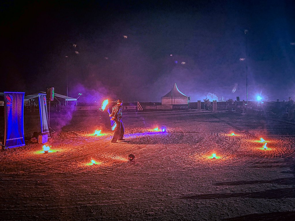 Am Samstagabend stand eine besondere Barriere-Springprüfung, ein Kostümspringen und ein Jump and Drive-Wettkampf auf dem Plan. Dieser besondere Parcourlauf muss erst mit dem Pferd und dann mit dem Fahrzeug absolviert werden.