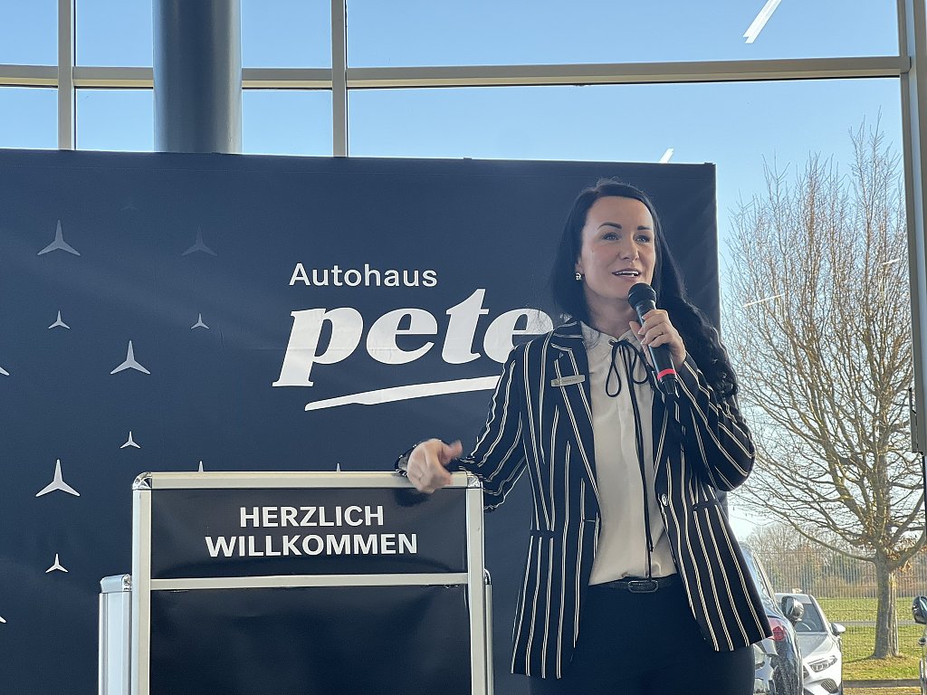 Passend dazu griffen Pkw-Verkaufsleiterin Esther Burg und Verkaufsberater Daniel Marré das Thema Mobilität auf und präsentierten den Gästen eine exklusive Sneak Preview neuester Fahrzeugmodelle von Mercedes-Benz. Vorgestellt wurden der GLB, der GLC sowie der CLA Shooting Brake. Während der GLB vor allem durch seine Vielseitigkeit und den großzügigen Innenraum überzeugt, steht der GLC für modernen SUV-Komfort und innovative Assistenzsysteme. Der CLA Shooting Brake verbindet sportliches Design mit hoher Alltagstauglichkeit und bietet viel Platz bei dynamischer Linienführung.