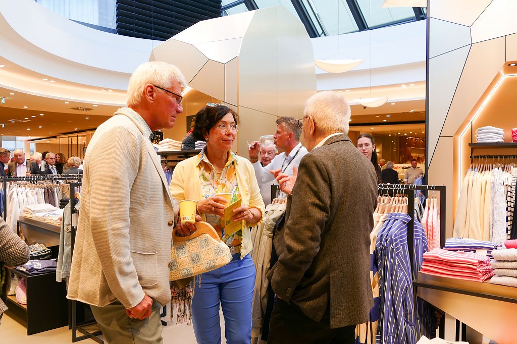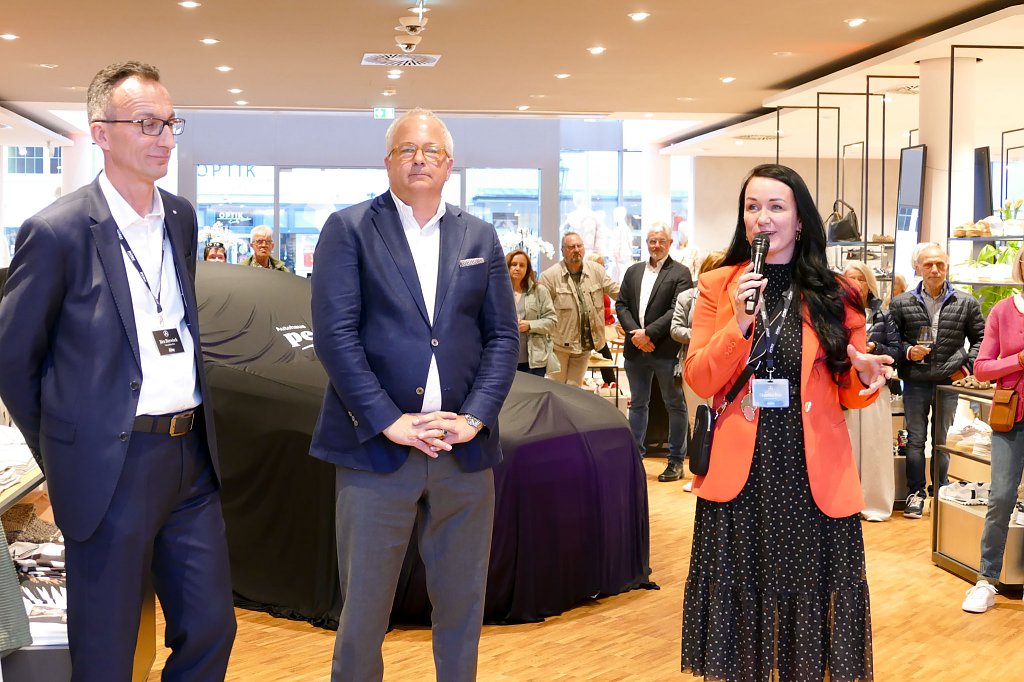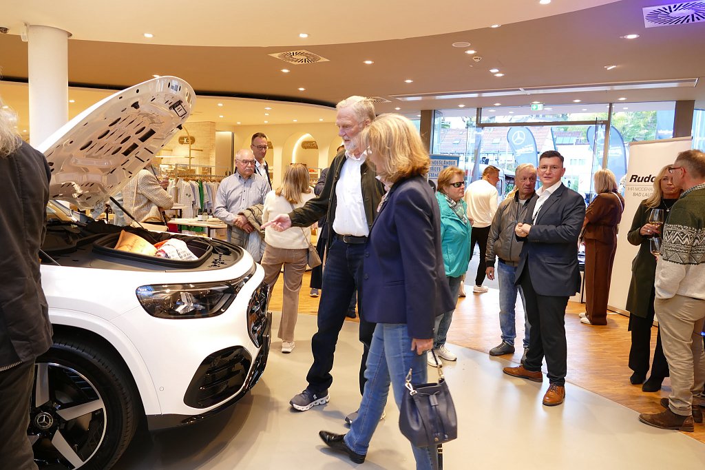 Im stilvoll modernisierten Modehaus Rudolphi begrüßte zunächst Hausherr Carsten Kröger die Gäste herzlich, gefolgt von Geschäftsführer Andreas Peter und Verkaufsleiter Jörn Bierwisch vom Autohaus Peter. Auch der neue elektrische GLB präsentierte sich als echtes Highlight am Eingang: Mit einer Reichweite von bis zu 631 Kilometern, großzügigem Raumangebot und innovativer Ausstattung vereint er Alltagstauglichkeit mit moderner Elektromobilität.